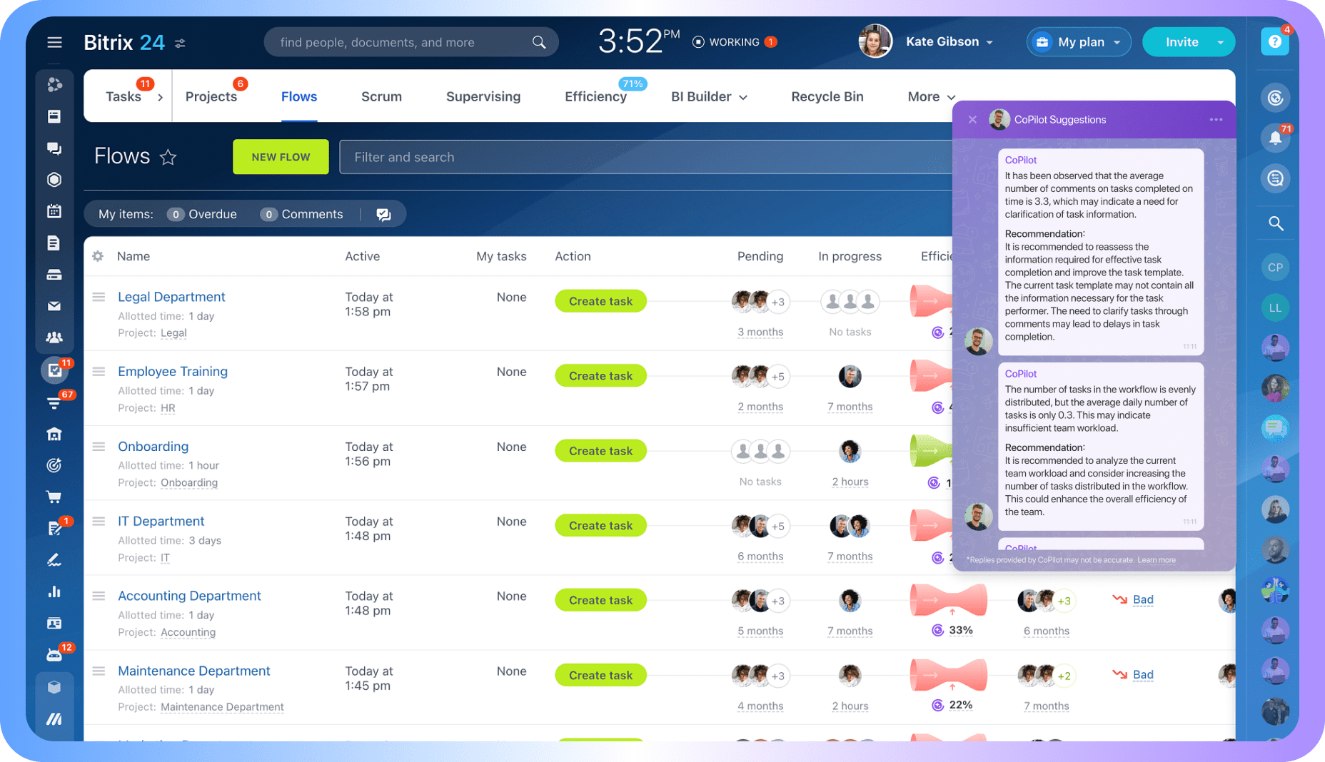 Com o CoPilot analisando seus fluxos em tempo real, você pode obter relatórios gerados por IA sobre a eficiência do fluxo e recomendações sobre como aumentá-la. Isso permite que você identifique e corrija possíveis gargalos antes que eles afetem a produtividade da sua equipe.