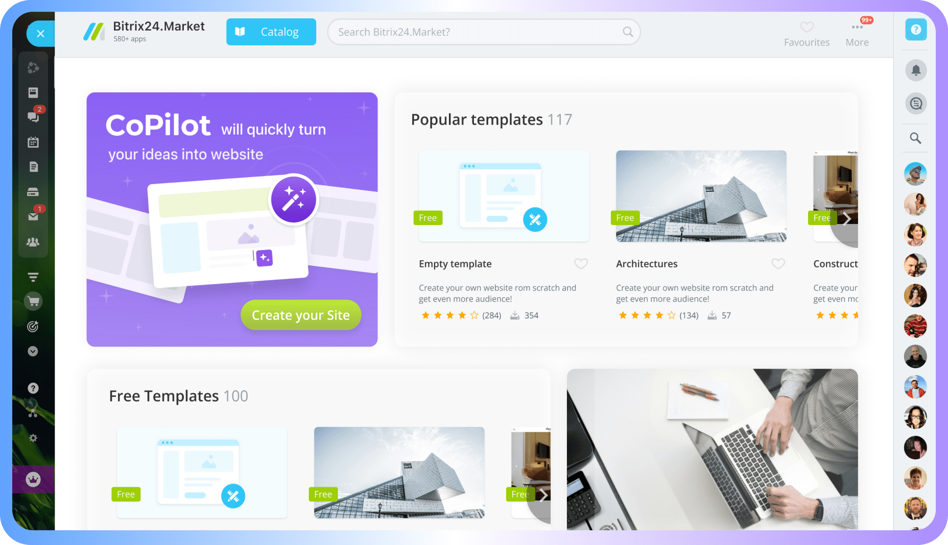 Bitrix24 Collab is a new, convenient way for you to collaborate with external users (freelancers, contractors, clients, etc.). All the project-related chats, video calls, files, and tasks stay inside your account, which allows foreasier control and tighter security.