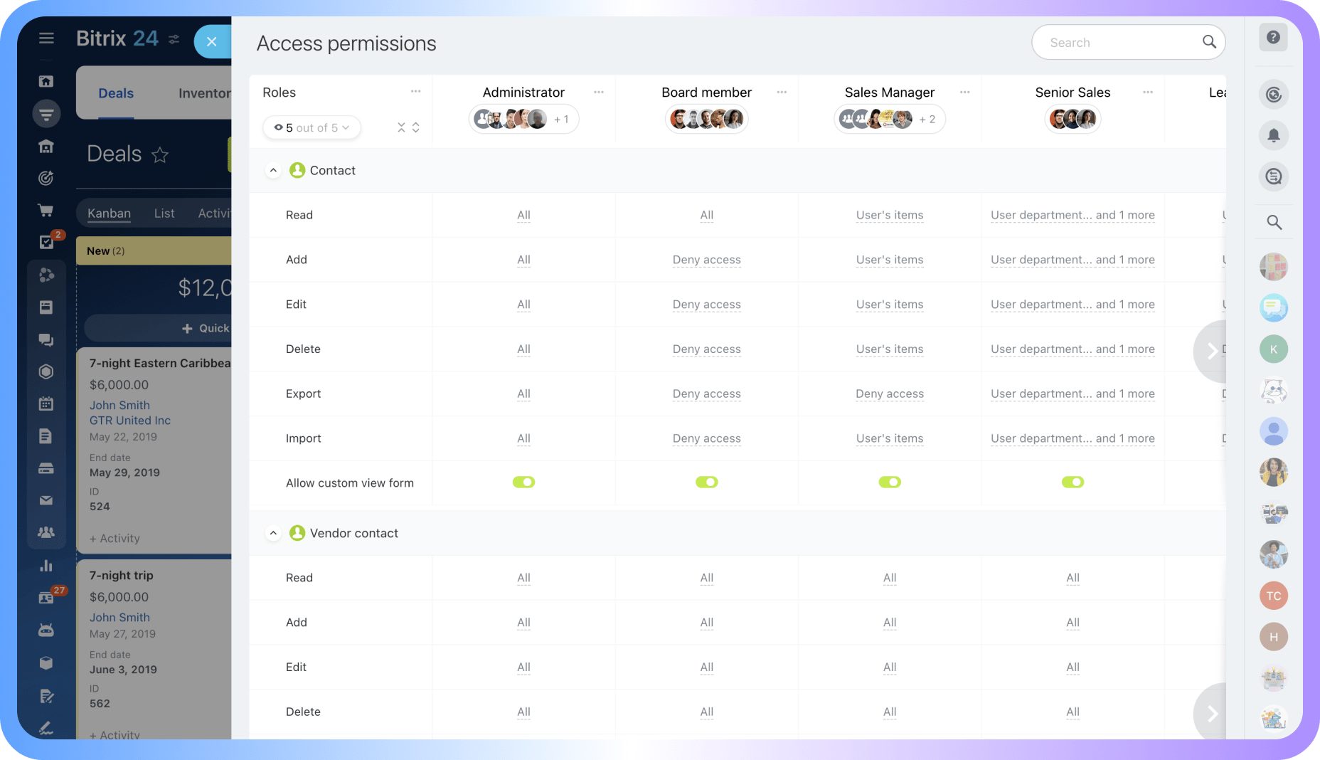 Now you can assign access permissions in CRM based on an employee's role (sales rep, department manager, administrator), restricting their ability to view, edit, or modify CRM elements.